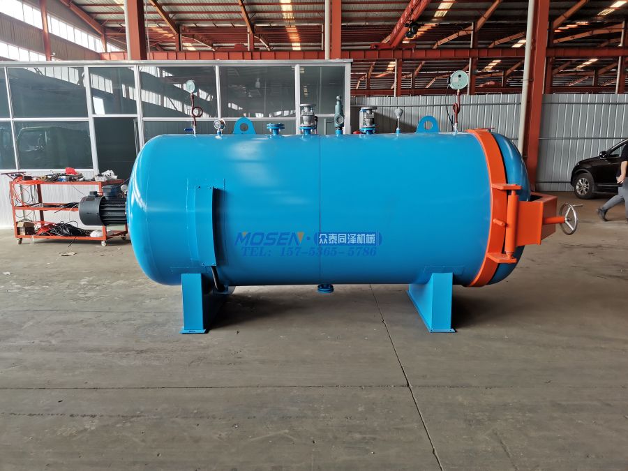 罐體部分:該部分由罐口、筒體、封頭、硫化車、電熱管裝置、隔板等組成。上配有安全聯(lián)鎖裝置的壓力開關口、進排氣接口、熱電阻、壓力表、壓力式溫度計、安全閥等安全附件,在罐口上裝有耐熱橡膠密封圈。工作時,在罐內(nèi)壓力作用下,使它貼在蓋緣上,以達到自動密封的目的。